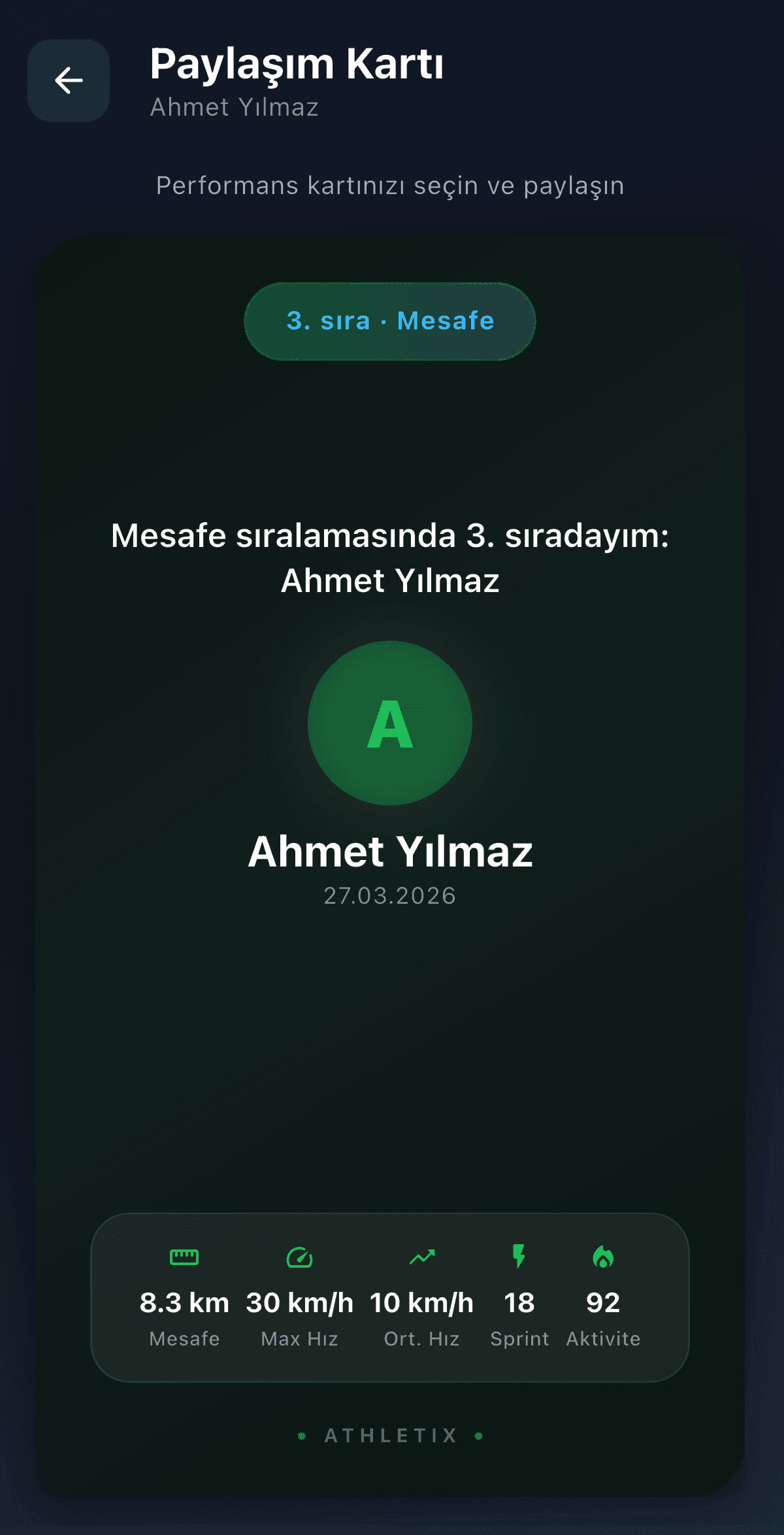 Share your performance highlights on social media or within your team in just one tap, keeping everyone in the loop.